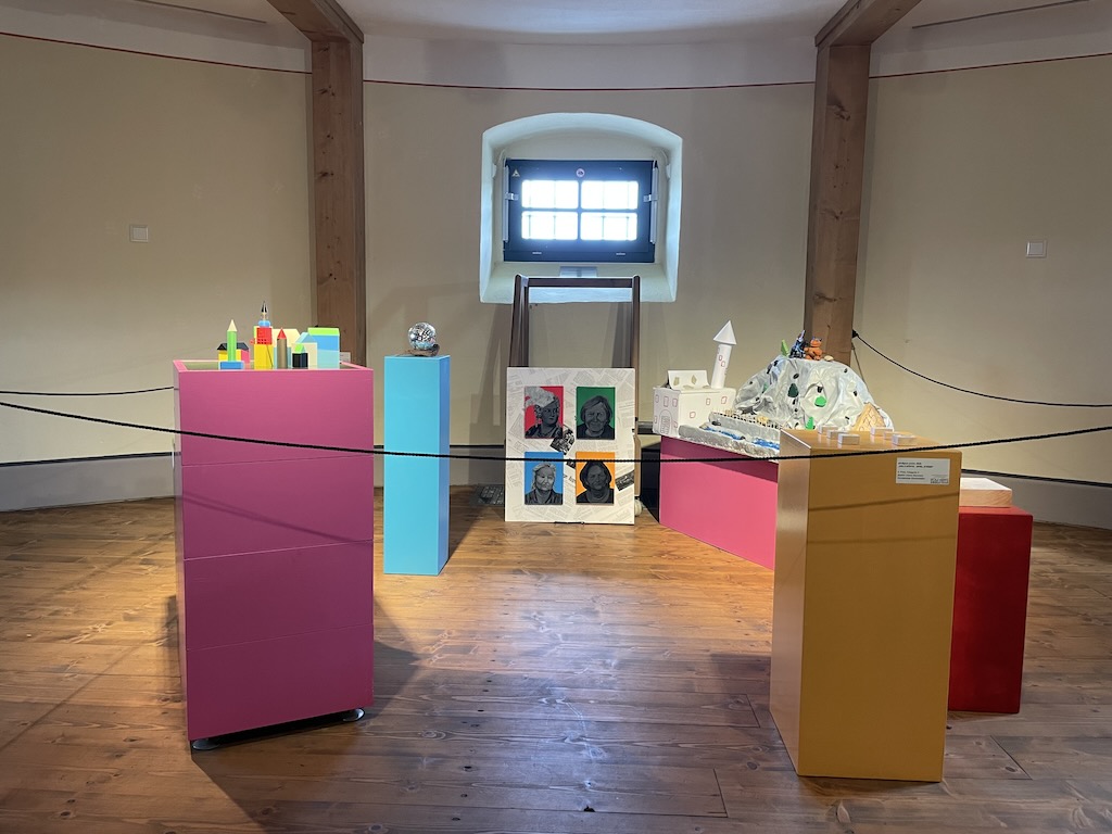 In einem Raum im Turm sind außerdem die Arbeiten der Preisträgerinnen und Preisträger der art-figura Junior zu sehen.